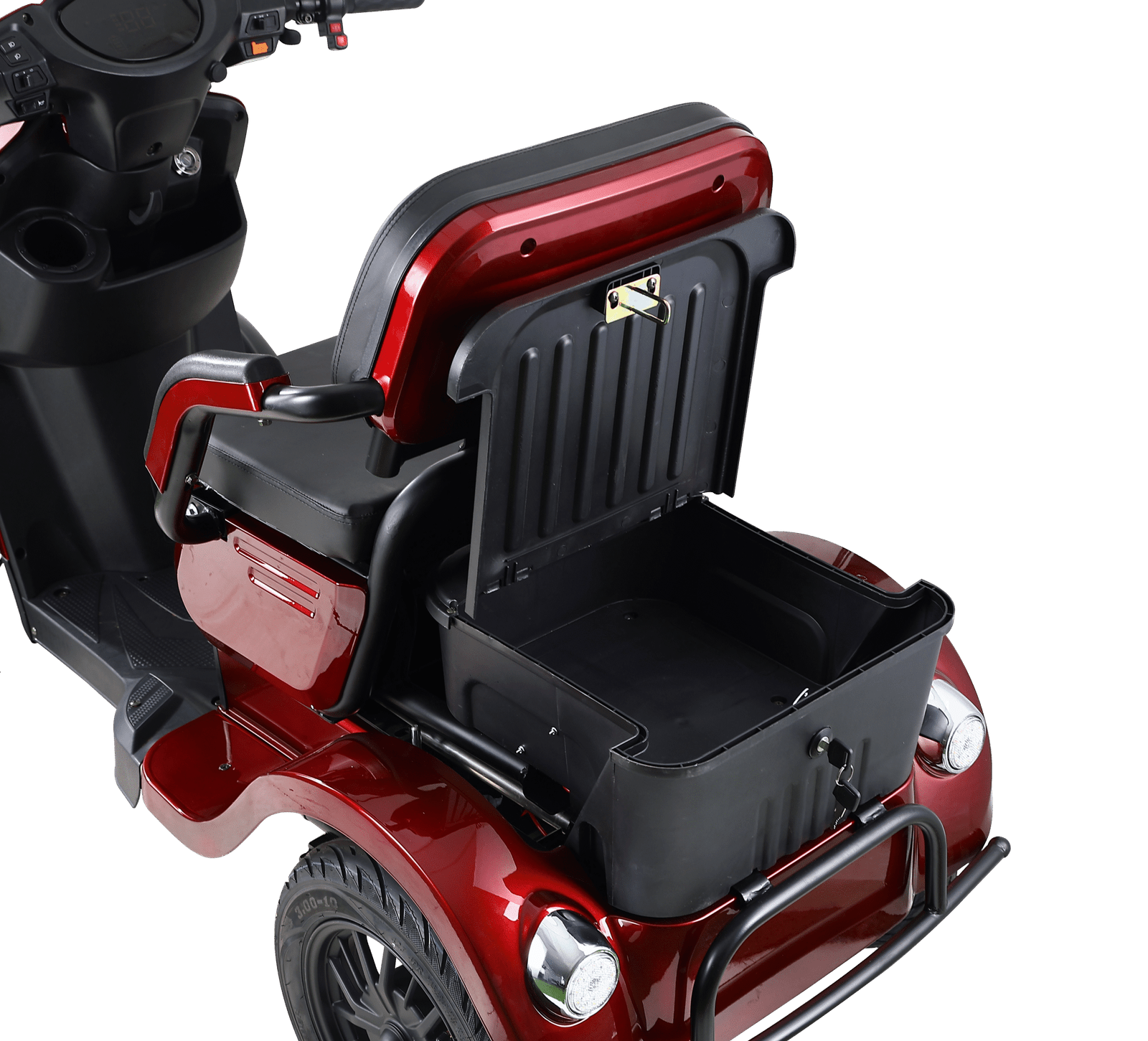 Waar de meeste scootmobielen stoppen bij twee zitplaatsen, gaat dit model verder.